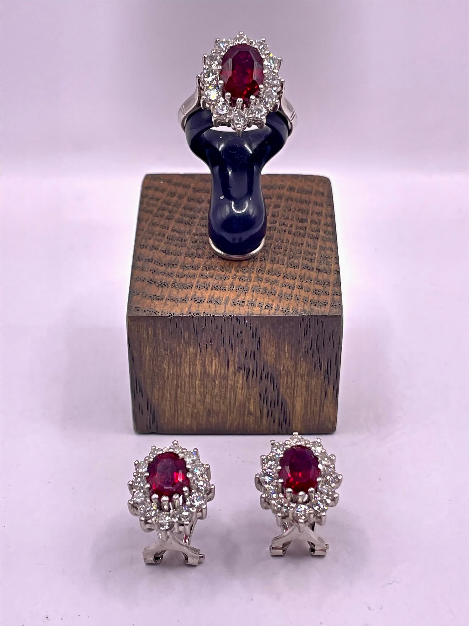 Juegos de pendientes y anillo de oro de 18 KT , RUBÍES Y DIAMANTES